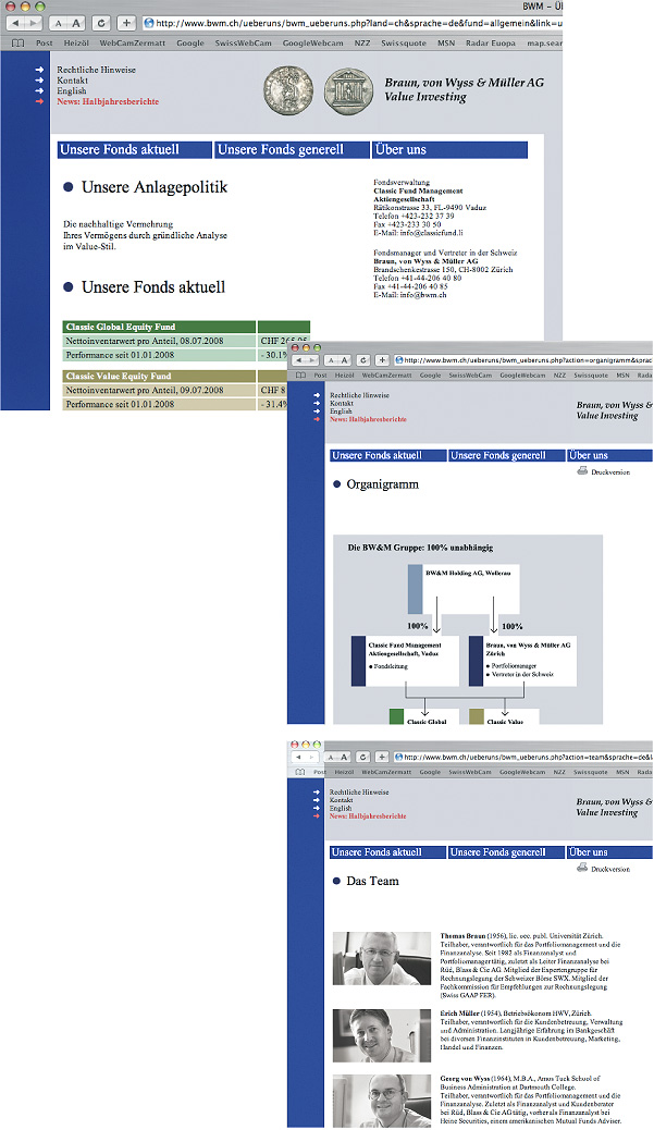 Das Anforderungsprofil der Fondsmanager für www.bwm.ch: «So funktional wie der SBB-Online-Fahrplan wollen wir sein.»